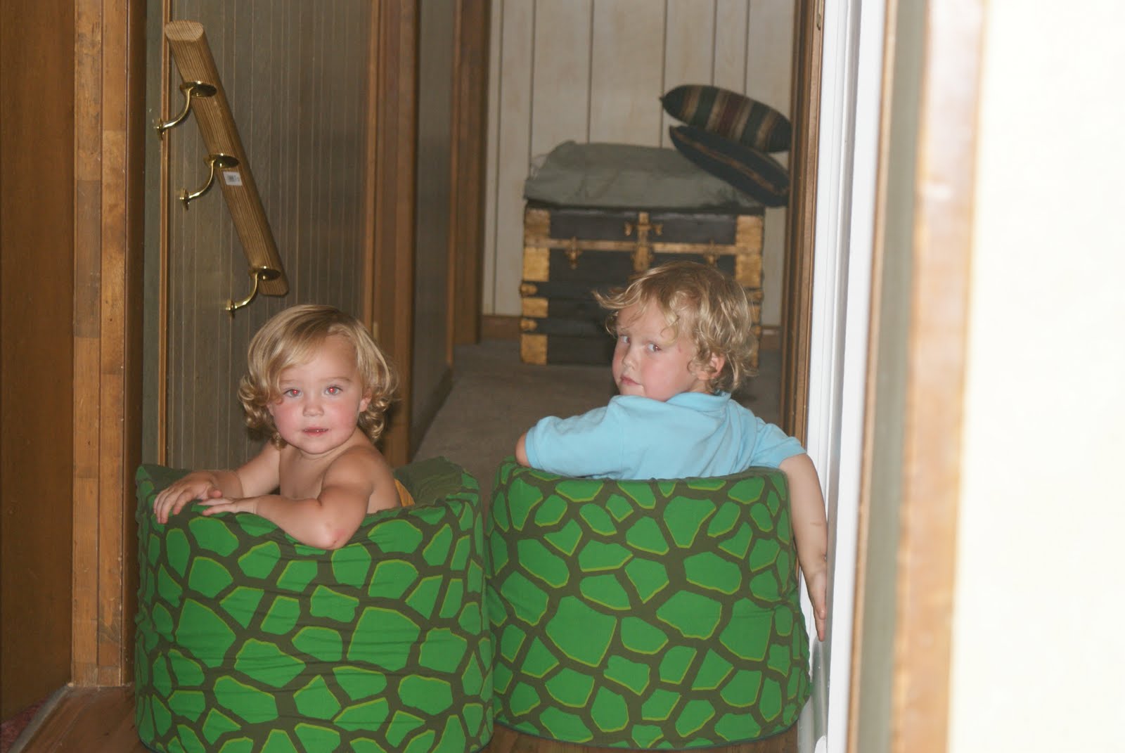 Then, the other picture is of Grant and Reagan having an "old fashioned" supper. They thought it was so funny to use this old antique table and silver tea set to pretend that they were poor!